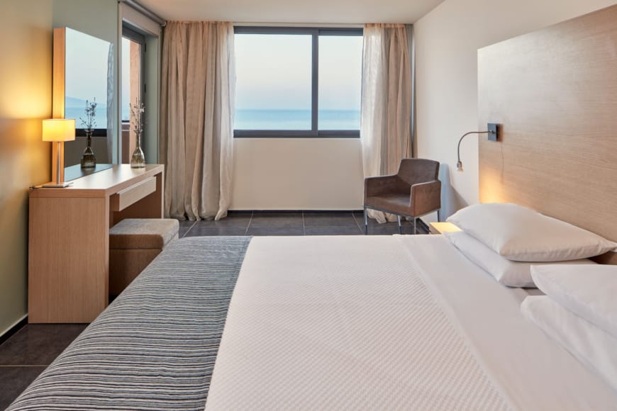 Feel right at home in a family suite with glowing side sea views and breezy comfort. Lounge in a quiet bedroom or cosy living space with two sofa beds. Step outside to your balcony or terrace and let the sounds of the sea carry you away.